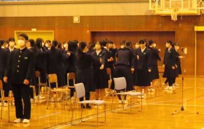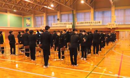 3月10日(金) 3年・卒業式練習の様子 その1 公開日 2023/03/10 更新日 2023/03/10 3年生 県立高校一般入試を終え、3年生が元気に登校してきました。卒業式の練習が始まり、1,2限は証書授与や合唱練習を行いました。