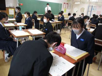 2年生になって5月29日(月)から始まる「社会に学ぶ『14歳の挑戦』」に向けて、事前マナー学習を行いました。1回目の今日は、挨拶や言葉遣いです。