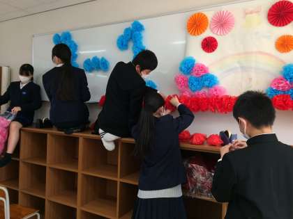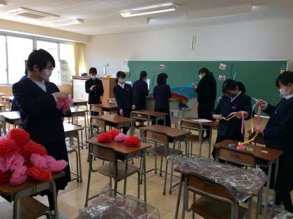 入学してからお世話になってきた3年生のために、お祝いの掲示をしました。明日、3年生の晴れの日に、少しでも華を添えることができたら幸いです。