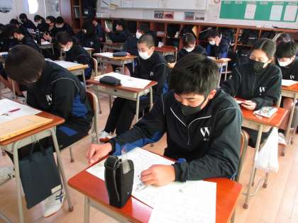 今日は「社会に学ぶ『14歳の挑戦』」に向けて、2回目の事前学習を行いました。