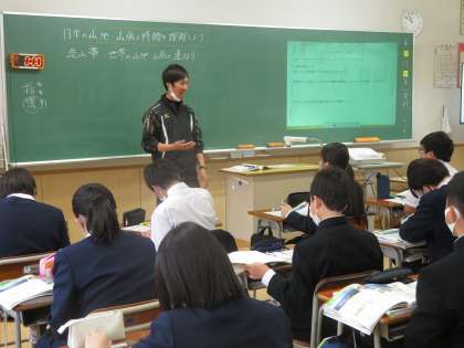 4月13日(木)「授業風景」 公開日 2023/04/13 更新日 2023/05/11 学校生活 どの学年も、本格的に教科の授業が始まりました。 (写真上)1年1組 数学 「オリエンテーション」 (写真中)2年3組 社会 「日本の山地・山脈の特徴を理解しよう」 (写真下)3年1組 保健体育「50m走」