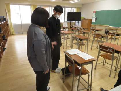 4月13日(木)生徒会活動「第1回代議員会・専門委員会」 公開日 2023/04/13 更新日 2023/05/11 学校生活 (写真上)環境美化委員会 (写真下)規律委員会※委員会後に顧問と打合せをしています。