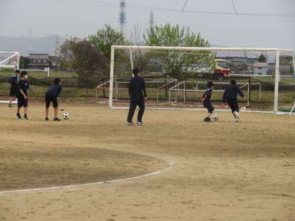 (写真中)サッカー部。オフェンスとディフェンスがいるようです。