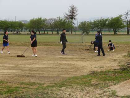 (写真下)ハンドボール部。練習に使うコートをつくっています。