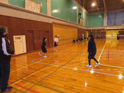 (写真中)バレーボール部。3人でアンダーパスの練習です。