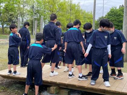 4月21日(金)1年生「プロジェクト・アドベンチャー」 公開日 2023/04/21 更新日 2023/05/11 1年生 プロジェクト・アドベンチャーも3組が最後です。 協力して活動することを体験して学びます。
