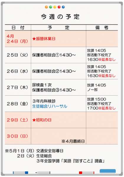 4月23日(日)「今週の予定」