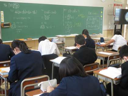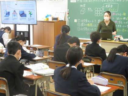 4月28日(金)2年生「授業の様子」 公開日 2023/04/28 更新日 2023/05/11 2年生 2時間目の様子です。 (写真上)1組理科「物質は何からできているかを考えよう」 周期表に元素記号を書き込みながら・・・ (写真中)2組保健体育「ハンドボール投げ」 男子も女子もがんばっています。 (写真下)3組数学「文字式の計算」 問題を解いて、ノートに書き込んでいます。名付けて「ミラクル・ノート」!