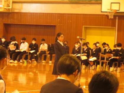 5月2日(火)生徒会活動「前期生徒総会」 公開日 2023/05/02 更新日 2023/05/11 学校生活 午前中に行った「生徒総会」 前期の執行部、学年生徒会、各専門委員会の活動案が審議され、承認を受けました。 今後はこれをみんなで実践していきます。