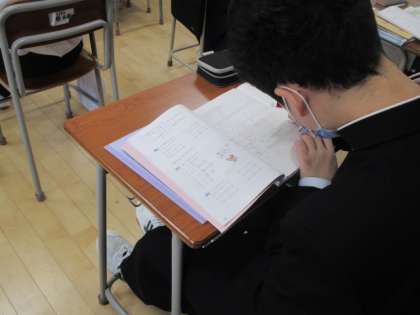 (写真中)2組数学・・・分数や小数の正負の計算に取り組んでいます。