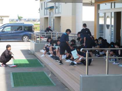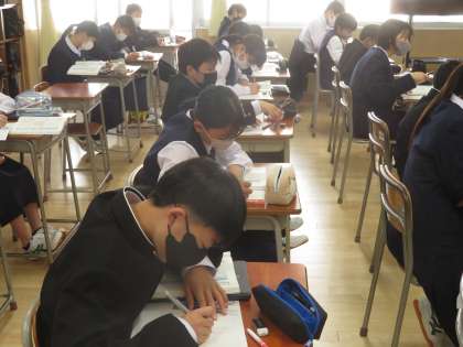 (写真上)1組国語「シンシュンの各場面を簡単に説明しよう」 (写真下)2組保健体育「持久走」