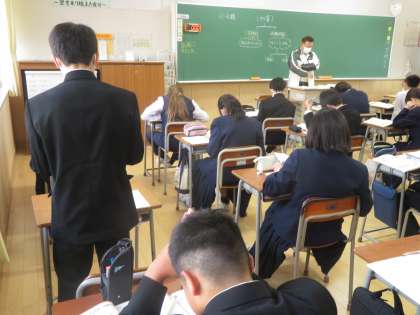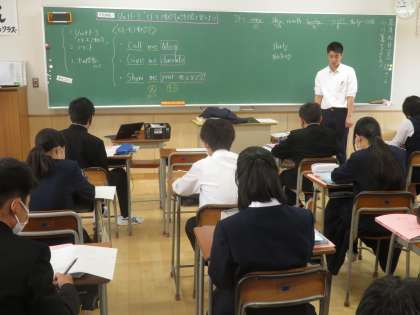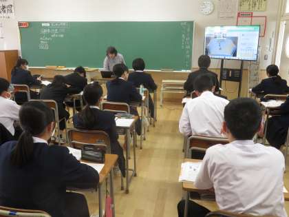 5月9日(火)2年生「授業の様子」 公開日 2023/05/09 更新日 2023/05/11 2年生 (写真上)1組英語「ヒト、モノ、動詞の語順を覚えよう」 (写真中)2組家庭「家の中の危険」 (写真下)3組理科「物質の分類」