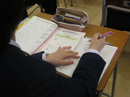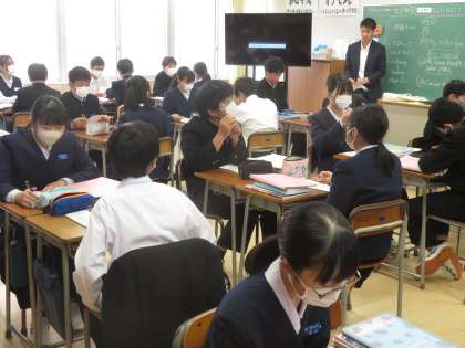 5月10日(水)2年生「授業の様子」 公開日 2023/05/10 更新日 2023/05/11 2年生 3時間目の様子です。 (写真上)1組英語「マーライオンってどんなものなのか読み取ろう」 二人で単語の意味を確認していました。 (写真中)2組理科「2つの物質を1つにすることはできるか」 鉄と硫黄を混ぜ合わせて加熱すると・・・ (写真下)3組数学「3つの連続した整数の和にはどんな性質があるか」 一番小さい数をnとすると・・・