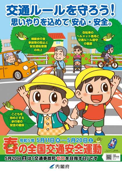 ★春の交通安全運動 5/11〜5/20 公開日 2023/05/11 更新日 2023/05/15 お知らせ 「春の交通安全運動」期間中です。 子供も大人も交通ルールを守り、お互いの安全・安心に配慮しましょう。 リンク:富山県「春の交通安全運動」