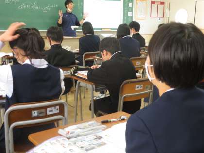 5月12日(金)1年生「授業の様子」 公開日 2023/05/12 更新日 2023/05/12 1年生 1時間目のようすです。 (写真上)1組社会「『いつ』の表現をマスターしよう」 (写真中)2組家庭科「食事って大切!」 (写真下)3組国語「文章をたよりに、二人の関係を推理しよう」