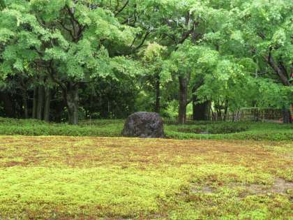 雨の中、緑が美しくしっとりとしています。
