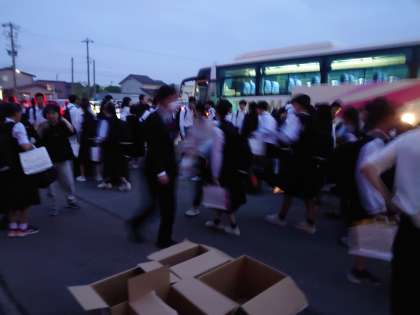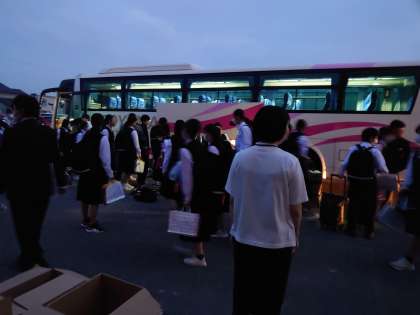 5月19日(金)3年生「修学旅行3日目」その18 公開日 2023/05/19 更新日 2023/05/19 3年生 3日間の修学旅行が終わり、無事帰着しました。 予定よりもずいぶん遅くなったため、学校にはバスの到着を待つ本校教員だけでなく、たくさんの家族の方々がいらっしゃいました。 この3日間のメモリーズをたくさん聞いてあげてください。 ありがとうございました。