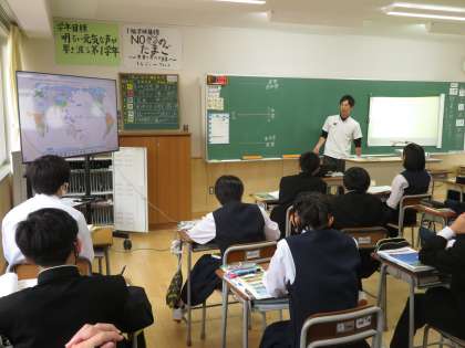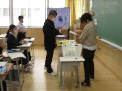 5月25日(木)1年生「授業の様子」 公開日 2023/05/25 更新日 2023/05/25 1年生 1時間目の様子です。 (写真上)1組社会・・・緯度の違いが生活や環境にどのように影響しているのでしょう。 (写真中)2組国語・・・文章の構成について学んでいます。 (写真下)3組英語・・・テストを返却していました。