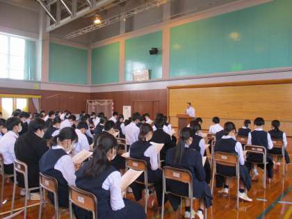 ★オープンハイスクールについて 公開日 2023/05/25 更新日 2023/05/25 3年生 6月から申し込みの始まるオープンハイスクールについての説明を学年集会で行いました。私立高校は3回ほど実施されることや、申し込みを各家庭で行うこと等の注意点を説明しました。プリントを3枚配布致しました。各ご家庭でご覧いただき、ぜひ進路選択の参考にしてください。