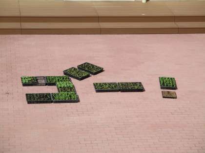 中庭に「ゴー!」のメッセージ。