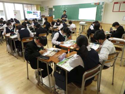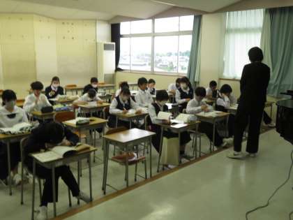 5月26日(金)1年生「授業の様子」 公開日 2023/05/26 更新日 2023/05/26 1年生 4時間目の様子です。 (写真上)1組美術「アクリルガッシュの使い方」 (写真中)2組社会「熱帯の人々の生活をまとめよう」 (写真下)3組音楽「主人は冷たい土の下に」