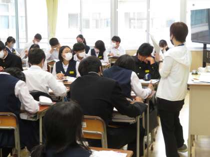 5月26日(金)3年生「授業の様子」 公開日 2023/05/26 更新日 2023/05/26 3年生 4時間目の様子です。 (写真上)1組理科「イオンのなりやすさ」 (写真中)2組英語「朝美が伝えたかったことは何?」 (写真下)3組国語「漢文の読み方を復習しよう」