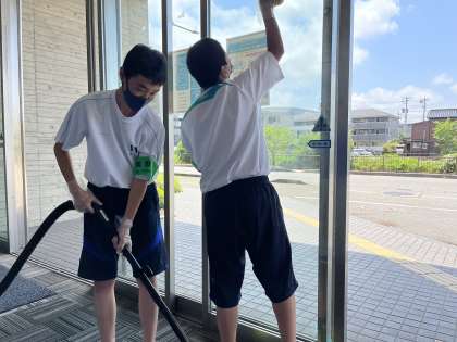 (写真下)富山市総合体育館・・・本日午前中は清掃業務です。「教えなくても細かなところまで気付いて掃除をしてくれる。」とお褒めの言葉をいただきました。