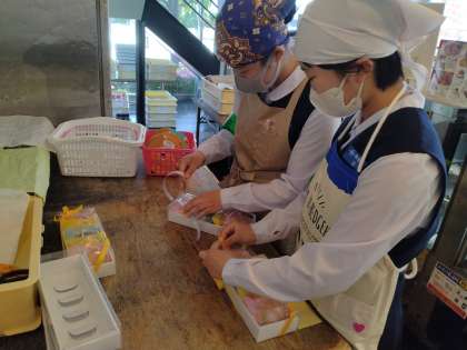 リブラン北本店。お菓子の袋にリボンをつけています。
