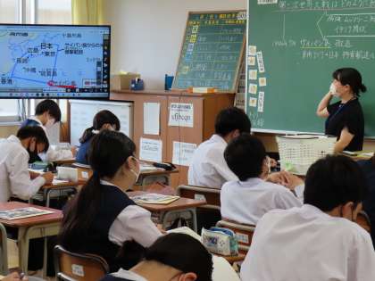 (写真上)1組社会「第二次世界大戦はどのように終結したのだろう」