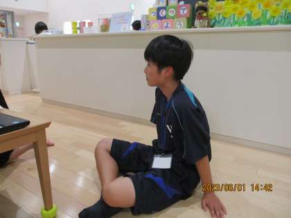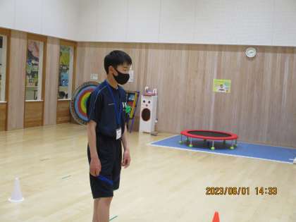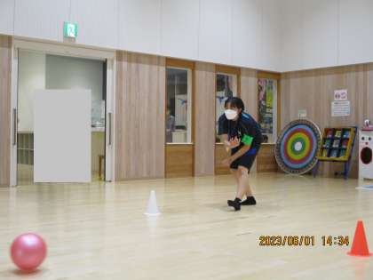 6月1日(木)2年生「14歳の挑戦4日目」その6 公開日 2023/06/01 更新日 2023/06/01 2年生 中央児童館。 (写真上・中)来館した児童と「ころがしドッヂボール」をしています。 (写真下)塗り絵をする児童を見守っています。