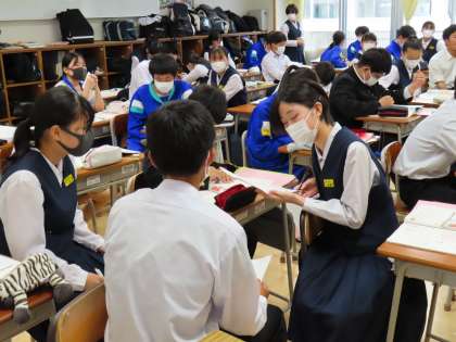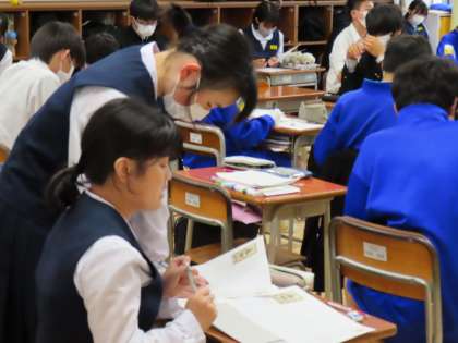 6月2日(金)3年生「授業の様子」 公開日 2023/06/02 更新日 2023/06/02 3年生 4時間目の様子です。 (写真上)1組理科「細胞分裂」 (写真中)2組英語「メールが理解できるかな」 (写真下)3組国語「孔子が伝えたかったことを、漢字や注釈から読み取ろう」