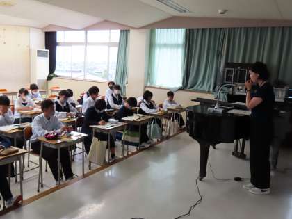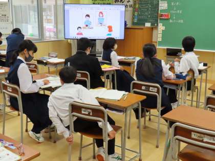 (写真中)2組英語「何を食べるか、朝ご飯調査をしよう」