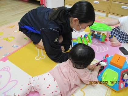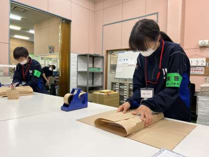 6月2日(金)2年生「14歳の挑戦5日目」その8 公開日 2023/06/02 更新日 2023/06/02 2年生 (写真上)北日本印刷・・・印刷物を包装して発送の準備をしています。 (写真中、下)晴雲幼稚園、桜谷保育園・・・子供達と楽しそうに遊んでいます。