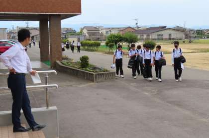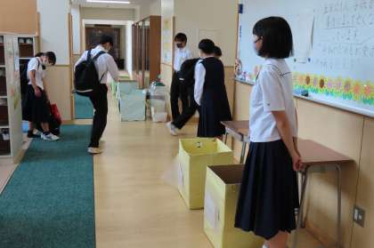 生徒玄関では、生徒会執行部が回収運動をしています。