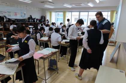 6月8日(木)3年生「授業の様子」 公開日 2023/06/08 更新日 2023/06/08 3年生 4時間目の様子です。 (写真上)1組数学「平方根の問題を解こう」 (写真中)2組社会「新たな対立は、どのような影響を与えたのだろう」 (写真下)3組英語「30秒以内で対話を読もう」