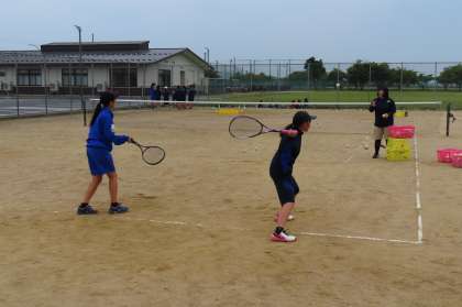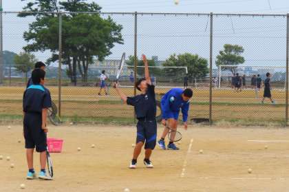 6月8日(木)「部活動の様子」その3 公開日 2023/06/08 更新日 2023/06/08 部活動 (写真上)ソフトテニス部男子 (写真中)ソフトテニス部女子 (写真下)息を合わせて応援の練習をしています。