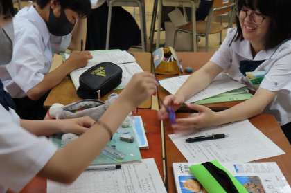 「金属と金属でないものの違いは何か」というテーマで、身の回りのものを豆電球や磁石で調べています。