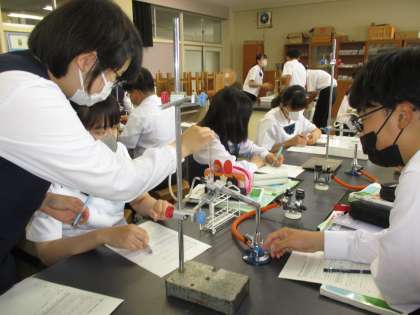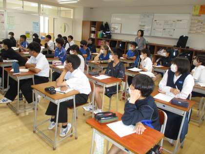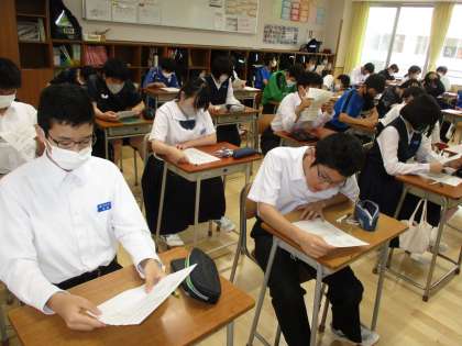 6月12日(月)2年生「授業の様子」その2 公開日 2023/06/12 更新日 2023/06/12 2年生 (写真上)理科は還元の実験をしています。黒い酸化銅が過熱によって変色するのがよく分かります。 (写真中)明日の「命の授業」に向けて、動画を視聴しています。みんな食い入るように見ています。 (写真下)少し早いですが、期末考査の範囲表を配りました。今から計画的に取り組み、成果を上げてほしいものです。