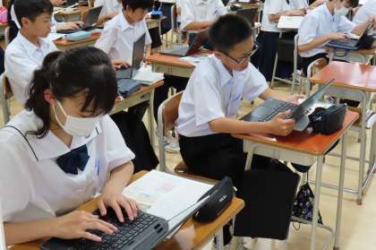 6月14日(水)2年生「授業の様子」 公開日 2023/06/15 更新日 2023/06/15 2年生 5時間目の様子です。 (写真上)1組社会「九州地方の農業の特徴をまとめよう」 (写真中)2組英語「なぜもったいぶっているのか読み取ろう」 (写真下)3組国語