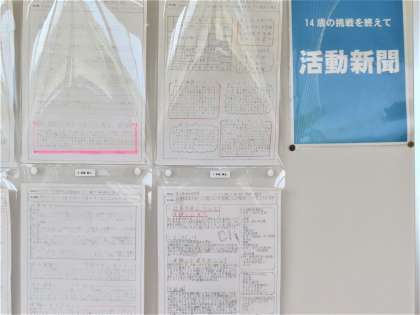 2年生の廊下には、先日の体験活動の個人レポートが掲示されています。