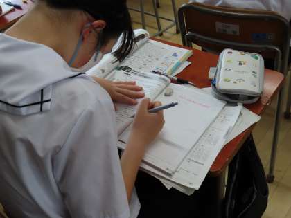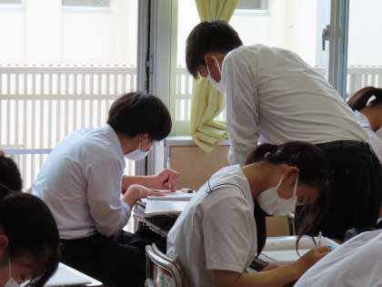 6月22日(木)3年生「授業の様子」 公開日 2023/06/22 更新日 2023/06/22 3年生 2時間目の様子です。 (写真上)1組保健体育「バレーボール」 (写真中)2組数学「根号を含む式の乗除」 (写真下)3組理科「生物の進化」