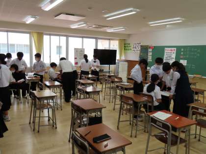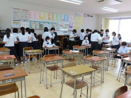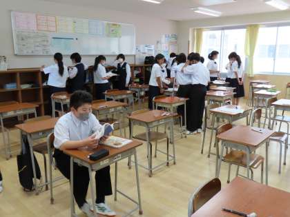 6月28日(水)1年生「テスト前の休み時間」 公開日 2023/06/28 更新日 2023/06/28 1年生 2時間目のあとの休み時間。 教室の後ろのほうに集まっているのは、ロッカーに入っている教科書や問題集で最後の確認をしているから。 今日はあと1教科!