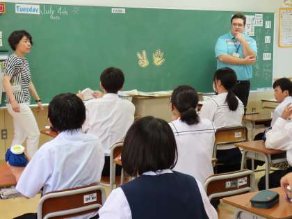 7月4日(火)1年生「授業の様子」 公開日 2023/07/04 更新日 2023/07/04 1年生 3時間目の様子です。 (写真上)1組英語「Today is America's Birthday!」 (写真中)2組国語「詩『1枚の絵』から想像できるものを描いてみよう」 (写真下)3組数学「同類項をまとめよう」