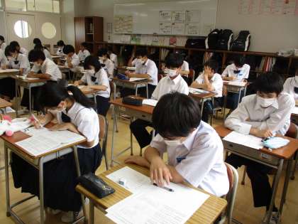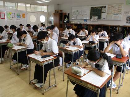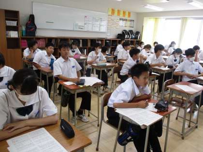 7月10日(月)2年生「合唱曲の選曲」 公開日 2023/07/10 更新日 2023/07/10 2年生 学活で、10月に行われる合唱コンクールの選曲のため、7曲を聴きました。 給食後ということもあり、すっかりいい気分に・・・・。
