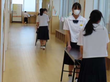 7月12日(水)3年生「作品展示」 公開日 2023/07/12 更新日 2023/07/12 3年生 何やら長机を運んでいる生徒が。 聞くと、美術の作品を展示するためのものだとか。 しばらくして教室の前を通ってみると、たくさんの作品が並べられていました。