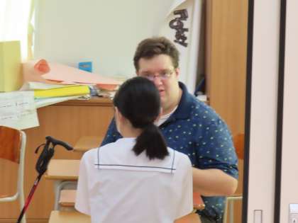 (写真上)1組英語「スピーキング・テスト What do you like to do?」