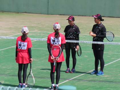 7月16日(日)「県総合選手権大会」ソフトテニス競技女子 公開日 2023/07/16 更新日 2023/07/16 部活動 今日は個人戦(ダブルス)に1ペアが出場しました。 朝一番の試合に精一杯の力をぶつけました。