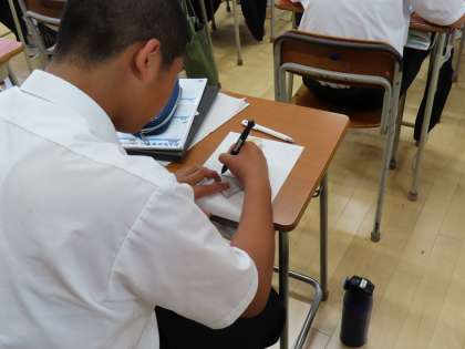 7月18日(火)2年生「授業の様子」 公開日 2023/07/18 更新日 2023/07/18 2年生 3時間目の様子です。 (写真上)1組国語「短歌をつくってみよう」 (写真中)2組理科「細胞のつくりとはたらきをまとめよう」 (写真下)3組数学「1次関数の式とグラフをつなげよう」