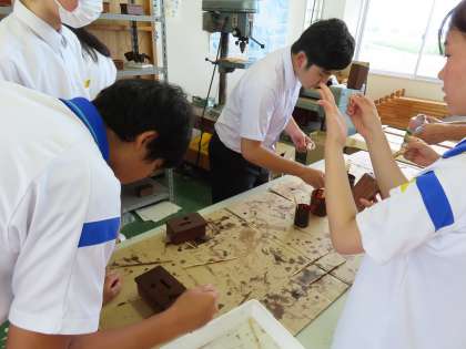 (写真下)3組技術「木製部分を仕上げていこう」