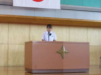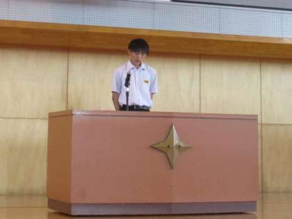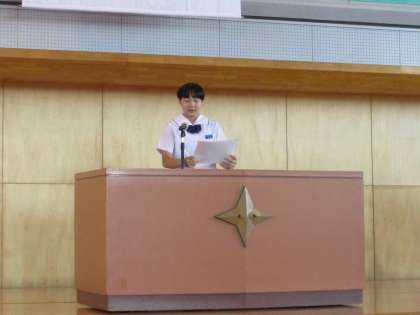 終業式に先立って、各学年の代表者が1学期を終えての感想や2学期に向けての抱負を発表しました。